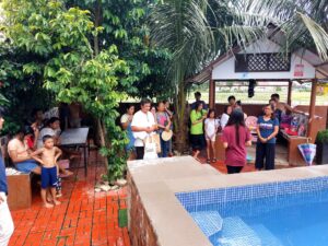 We have a baptism tank, but we enjoy baptizing people publicly sometimes. So the community knows the kingdom of God is here. (The others in the pool were swimming when we arrived.)