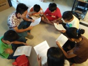 These young people–in our Buhangin church in Davao City–are usually bouncing off the walls and noisily enjoying each others’ company. But when youth leader Bee gives them an assignment, there’s total silence as they study.